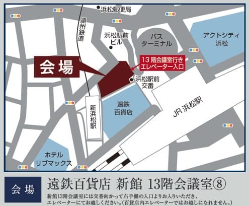 会場の遠鉄百貨店新館13階会議室には、浜松駅前交番に向かって右手側の