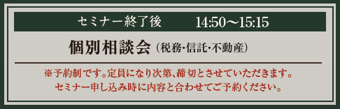■セミナー終了後 14:50~15:15 個別相談会(税務・信託・不動産)