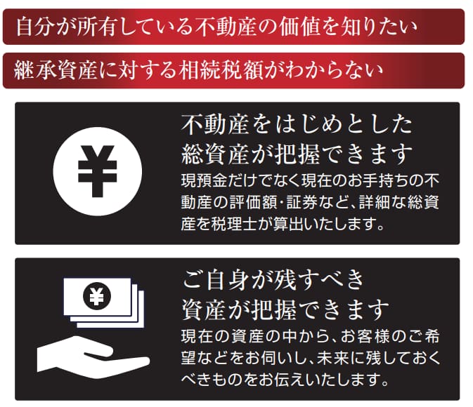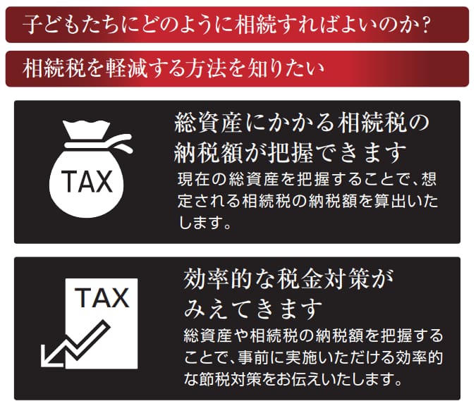 相続税の軽減方法など適切なアドバイスもさせていただきます。