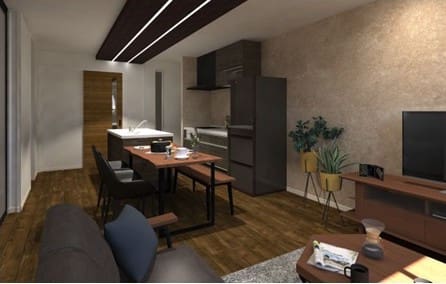 ※パースは実際の図面をもとに描き起こしたものですが、外構等実際のものとは異なる場合がございます。予めご了承ください。