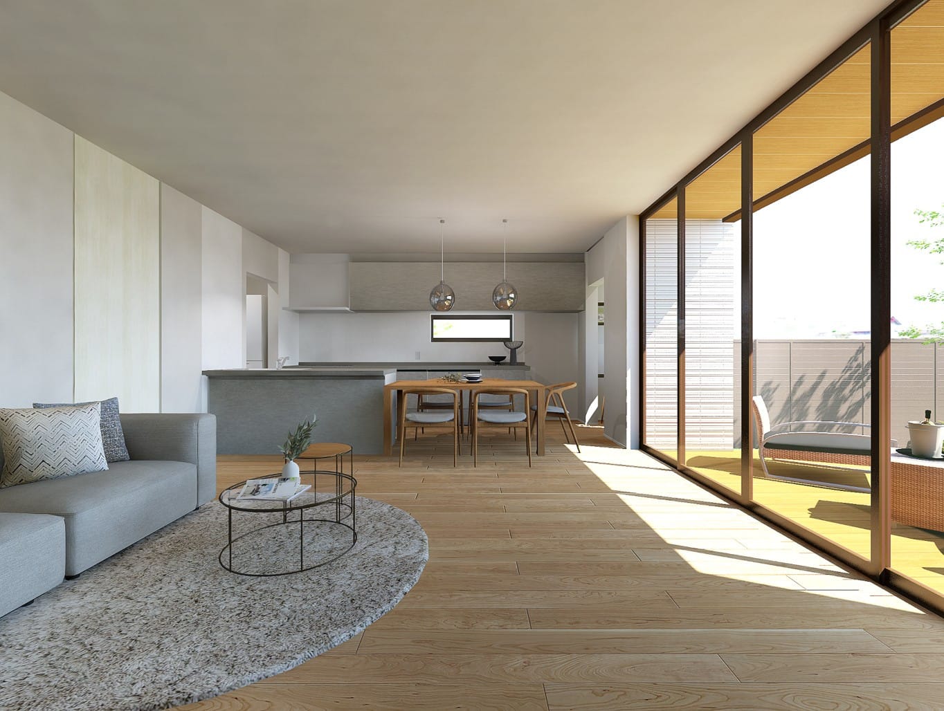・4Mの連続大開口により光が差し込むLDK空間