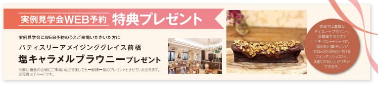 見学会開催中、WEB予約の上ご来場いただいたお客様に、パティスリーアメイジンググレイス前橋(前橋市小相木町)「塩キャラメルブラウニー」プレゼント!