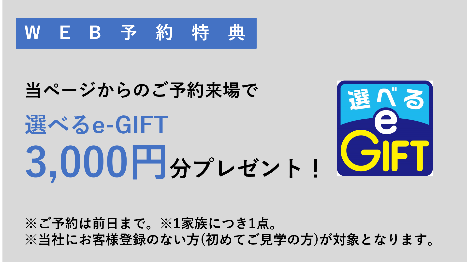 WEBからのご予約来場で、選べるe-GIFT3,000円分プレゼント!