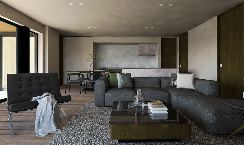 三台の車を迎えるビルトインガレージから、静かに住まいへとつながる動線が始まる。1階と2階をつなぐエレベーターが、日々の移動を優雅にし、住まい全体にゆとりある流れを生み出している。二階へ上がれば、光が満ちるリビングが広がり、コーナーバルコニーからの陽射しが空間にやわらかな明るさを添えてくれる。隣にはサンルームが寄り添い、季節の光と風をそのまま抱きしめるように満たしていく。機能と上質さが穏やかに調和する、心豊かな時間を育む住まいです。