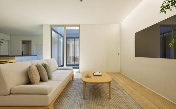 プライバシーが守られた中庭を中心に内と外がつながる住まい。