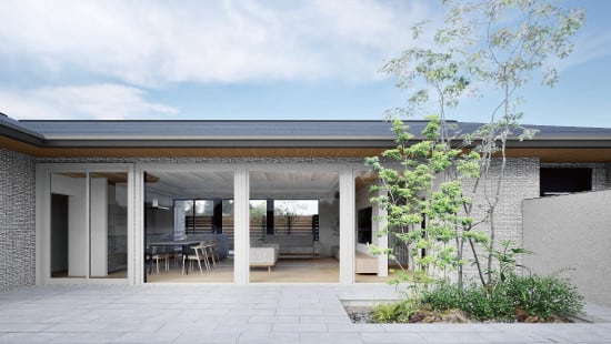 南北二つの庭に挟まれた水平方向への広がりと光を楽しむ平屋の住まい