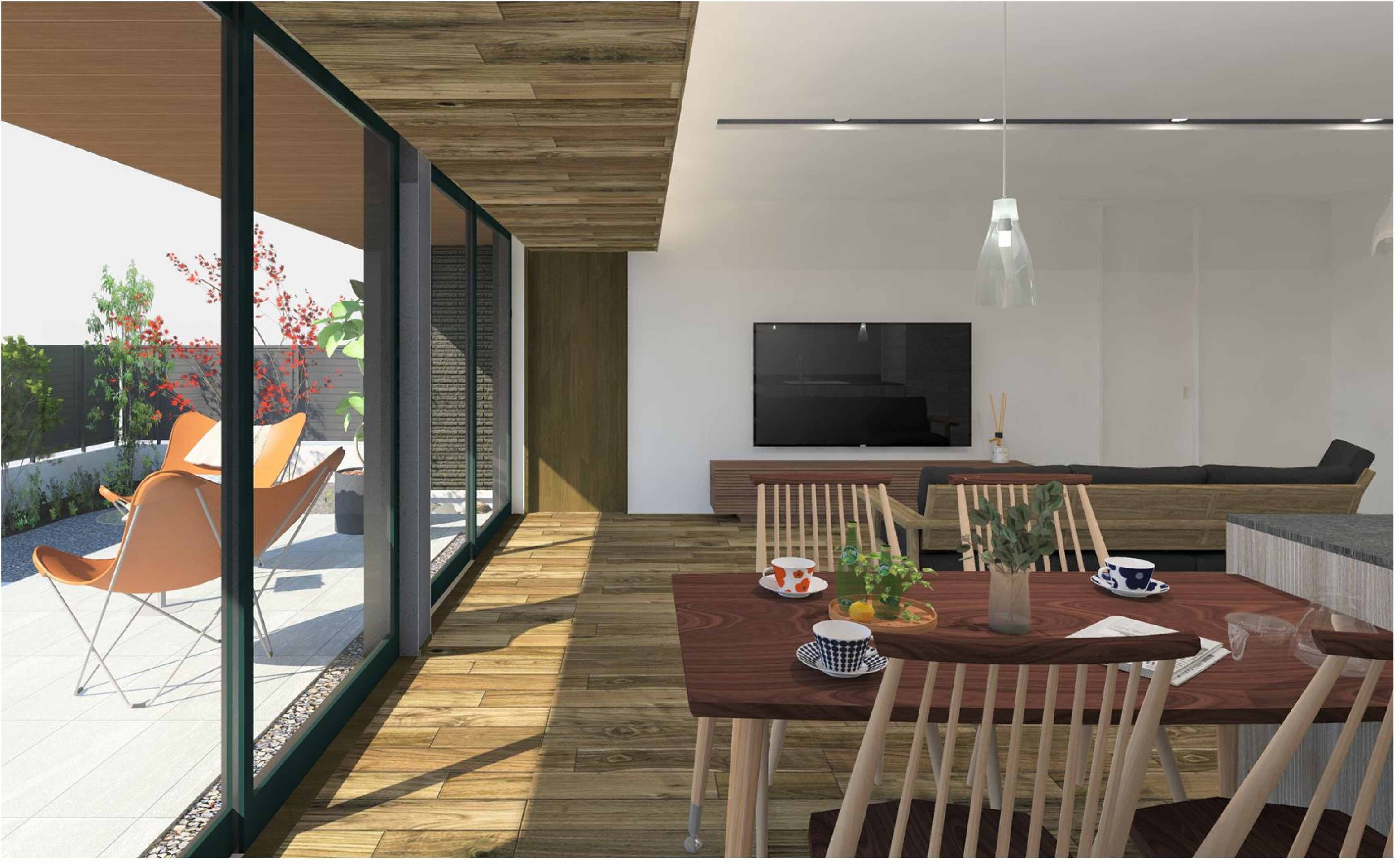 開放的なLDKから6m連続サッシでつながる深い軒下空間