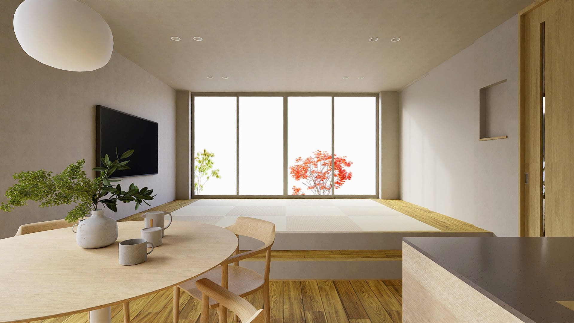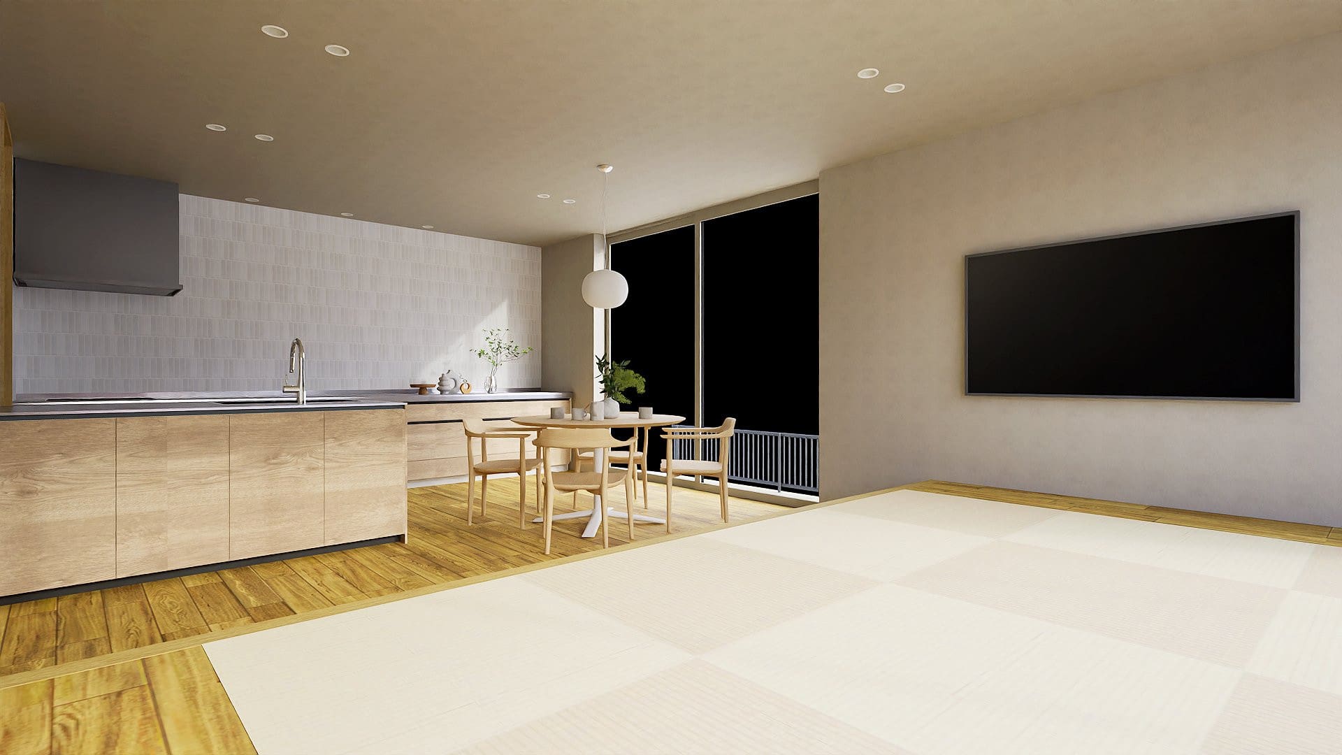 窓辺で集い、キッチンでつながる。家事効率も考えられた間取りです。