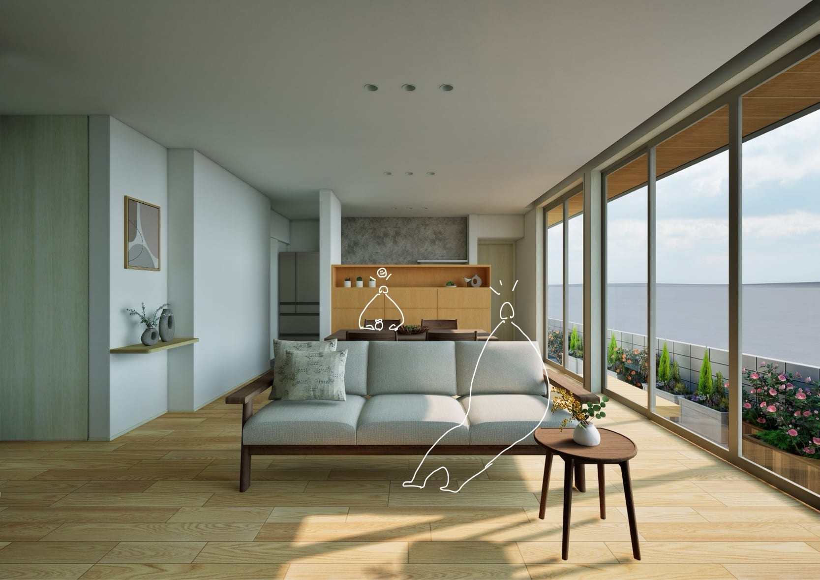 段差のないフラットな平屋の空間は、いつでも家族の気配を感じられる安心感のあるくらしを生み出します。さらに、地面と近い高さから季節を楽しめるリビングや風の通り道を感じられる設計など、自然との共生も大切にするのが積水ハウスの平屋の暮しです。
