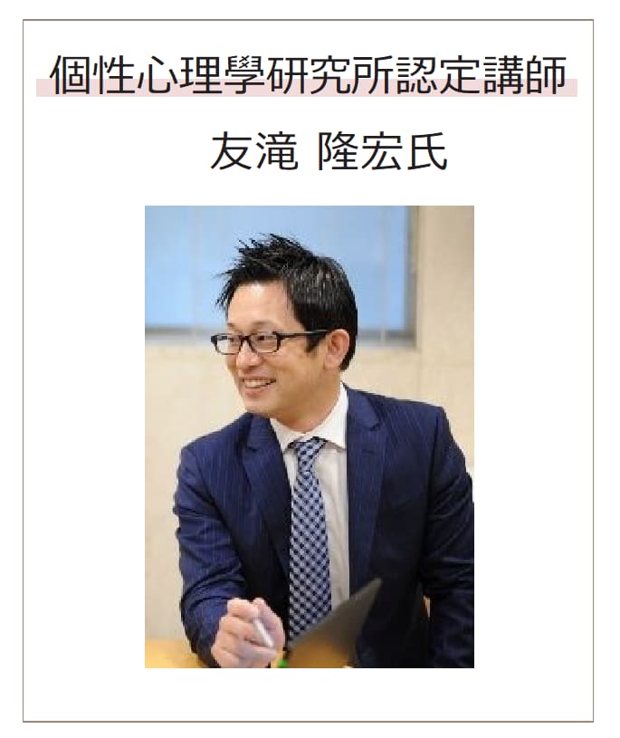 ☆個性心理學研究所認定講師:友滝 隆宏氏☆
