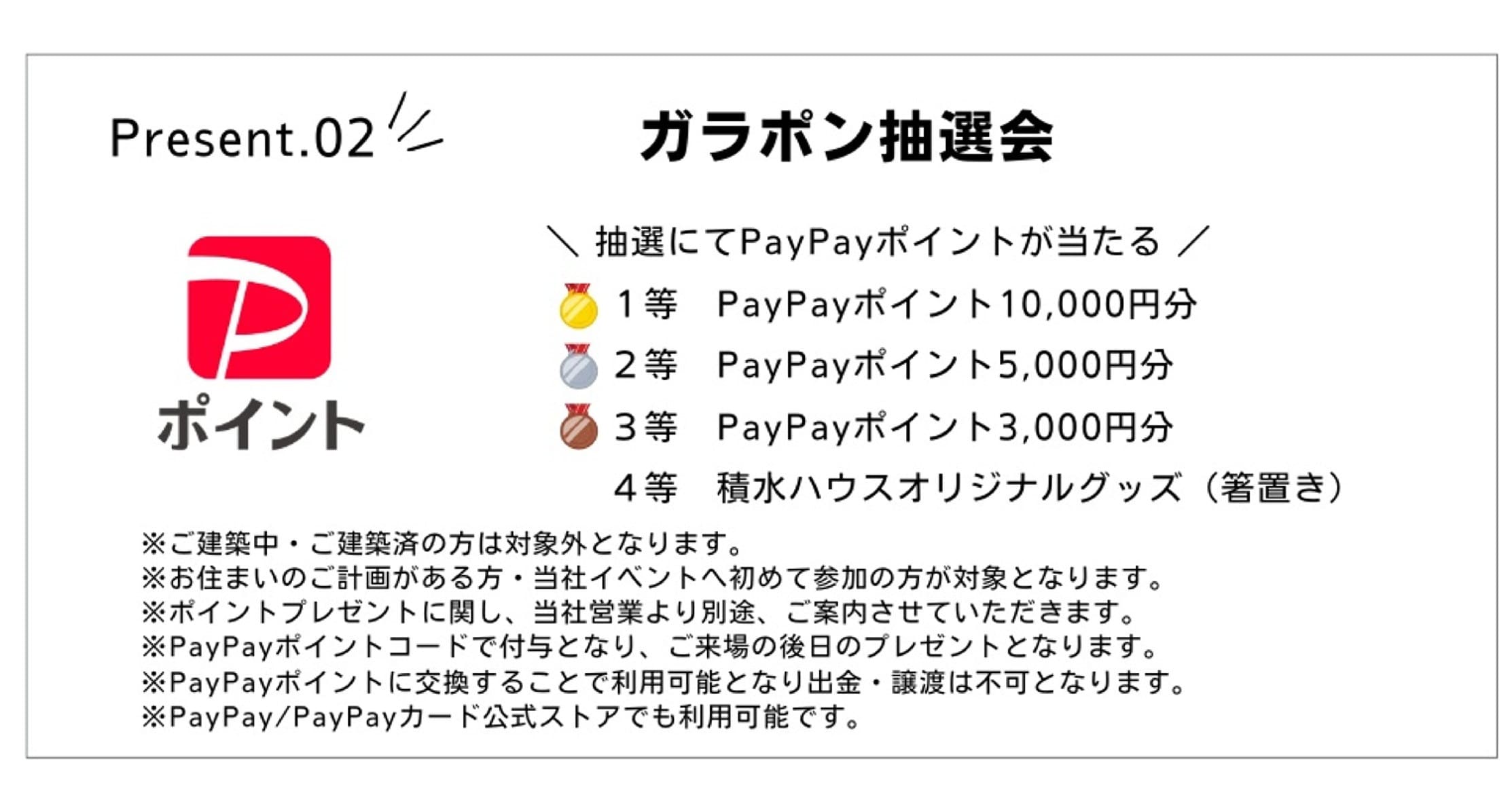 ※PayPayポイントコードで付与となり、ご来場の後日プレゼントとなります。