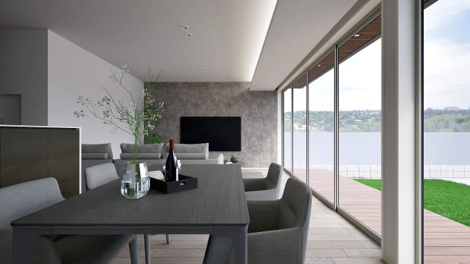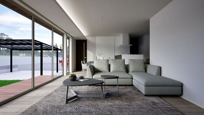 フラットに広がる間取りは、どこにいても視界が抜けて開放的。