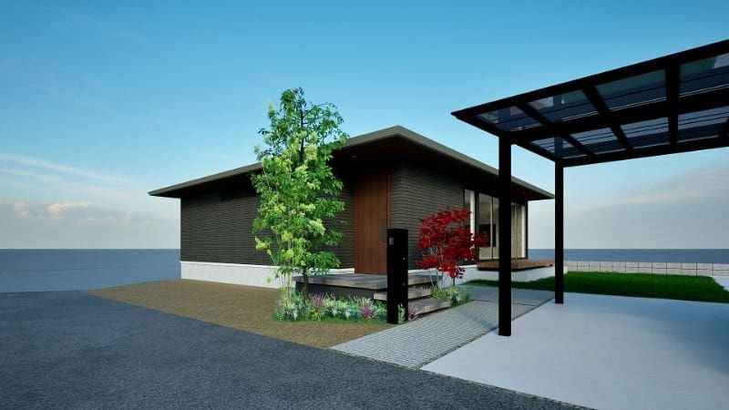 グレーを基調にまとめた、洗練された雰囲気の平屋の住まい。