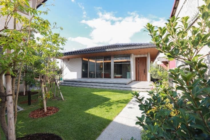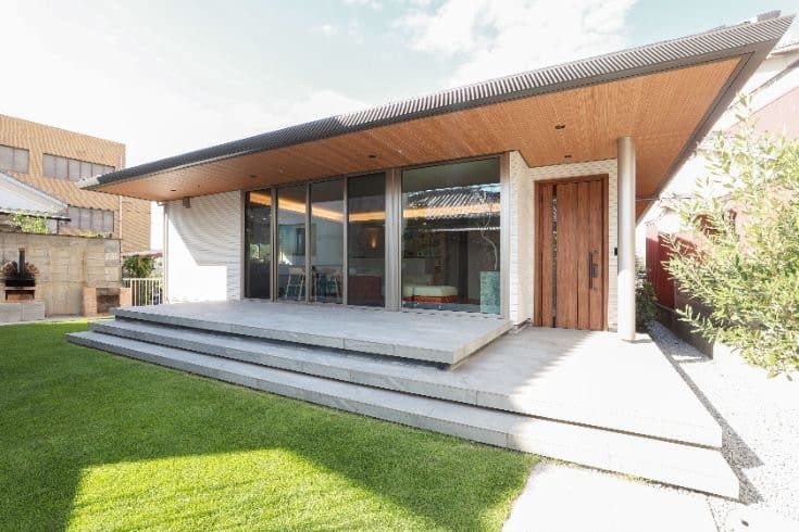 焼き物の質感と美しさを持つ陶板外壁「ベルバーン」外壁を採用した平屋のお住まい。