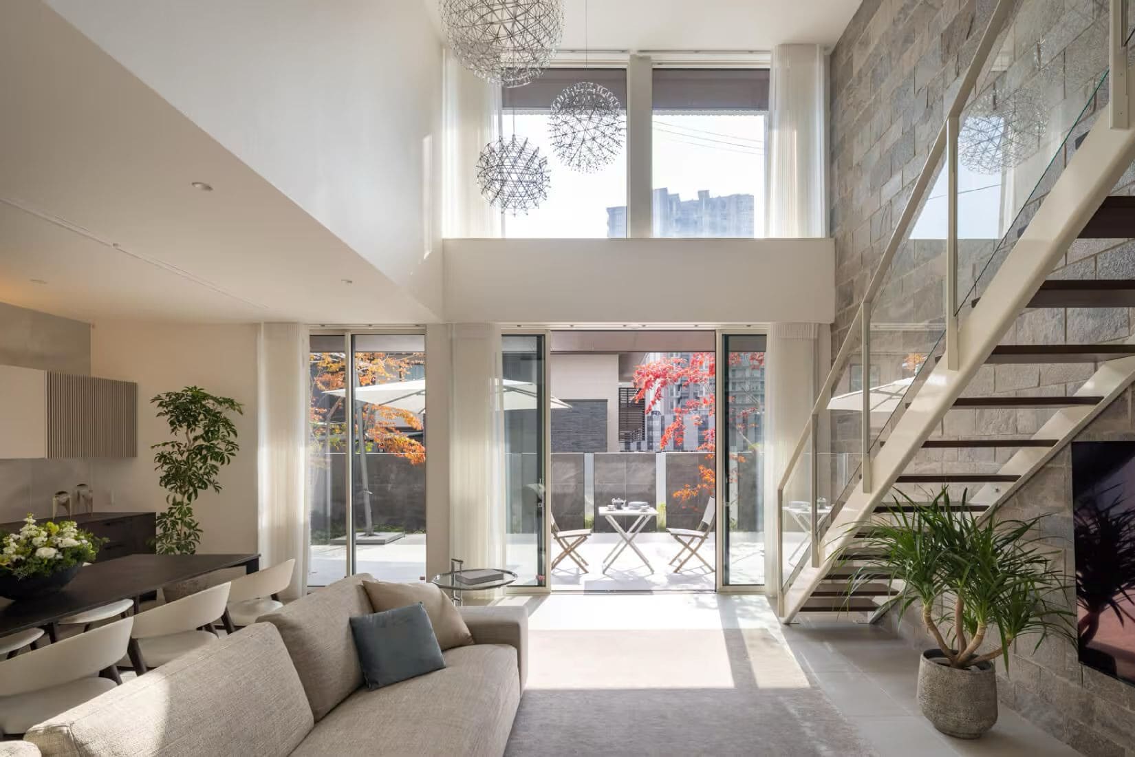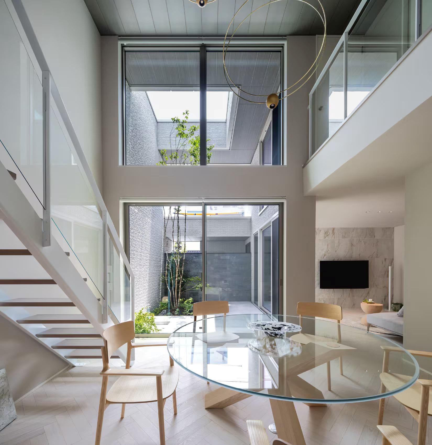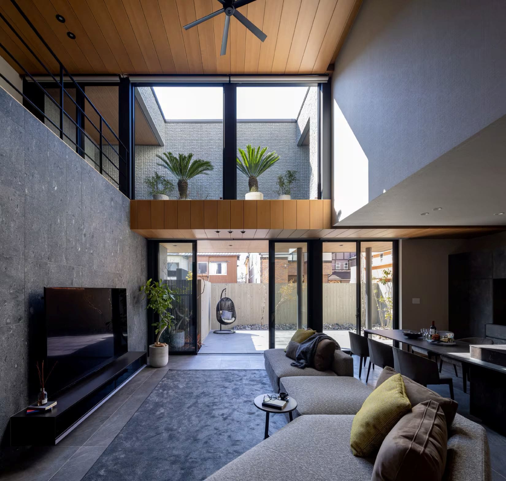 周囲を建物で囲われた立地の中で、自分達だけの音と光に包まれた住まいへ。