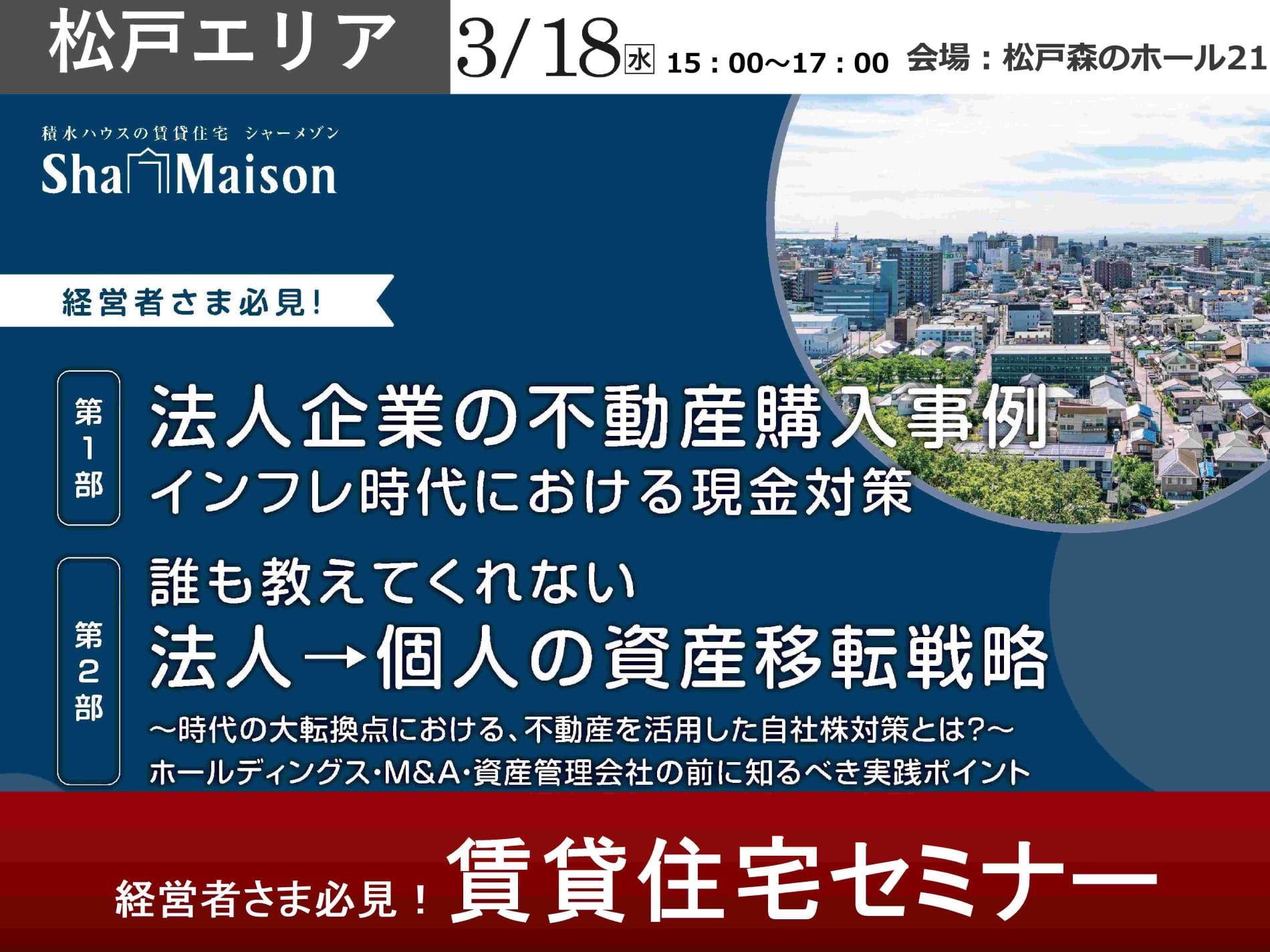 【3/18(水)開催】経営者さま必見!個人資産移転戦略セミナー~森のホール21(松戸市文化会館)会場~