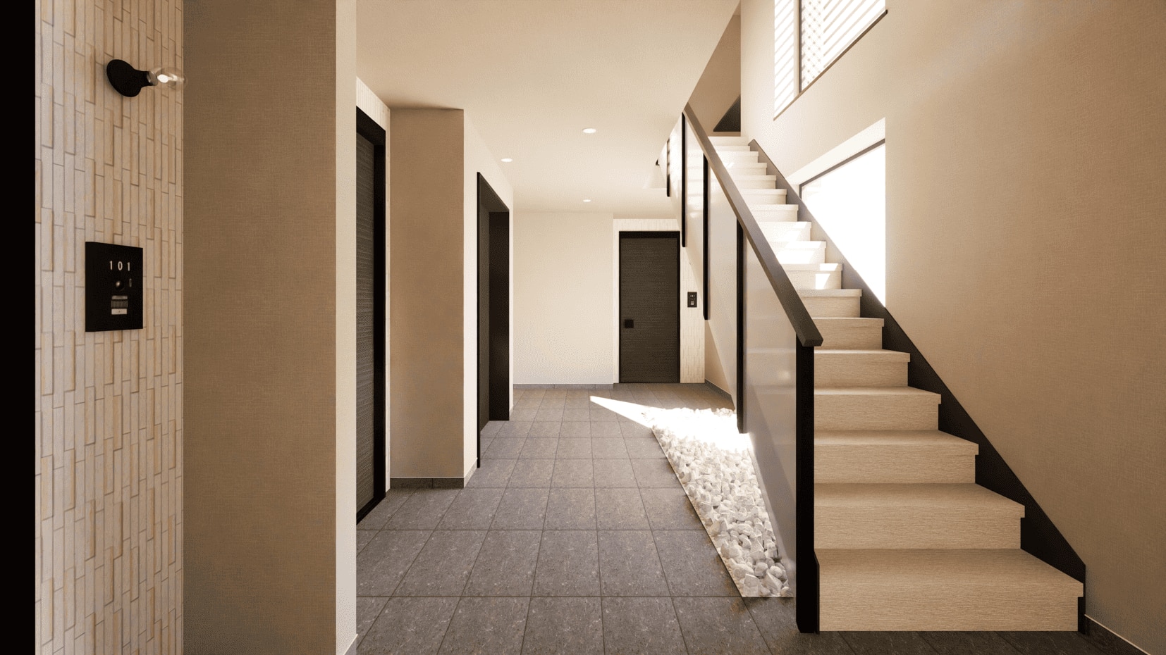 玄関にはアルコーブを計画しプライバシー空間を確保
