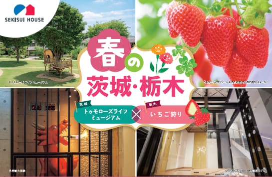 積水ハウスの「トゥモローズ ライフ ミュージアム」と、季節の味覚を楽しめるいちご狩り農園へご案内いたします。