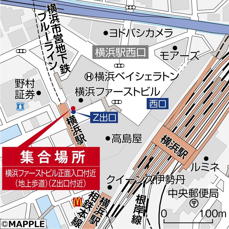 ※JR「横浜」駅 西口からジョイナスB1F(旧ダイヤモンド地下街)「Z」出口よりすぐになります。