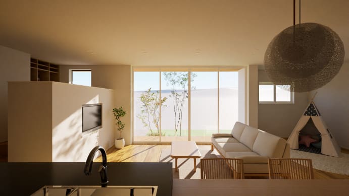 段差のないフラットな平屋の空間は、いつでも家族の気配を感じられる安心感のあるくらしを生み出します。さらに、地面と近い高さから季節を楽しめるリビングや風の通り道を感じられる設計など、自然との共生も大切にするのが積水ハウスの平屋の暮しです。