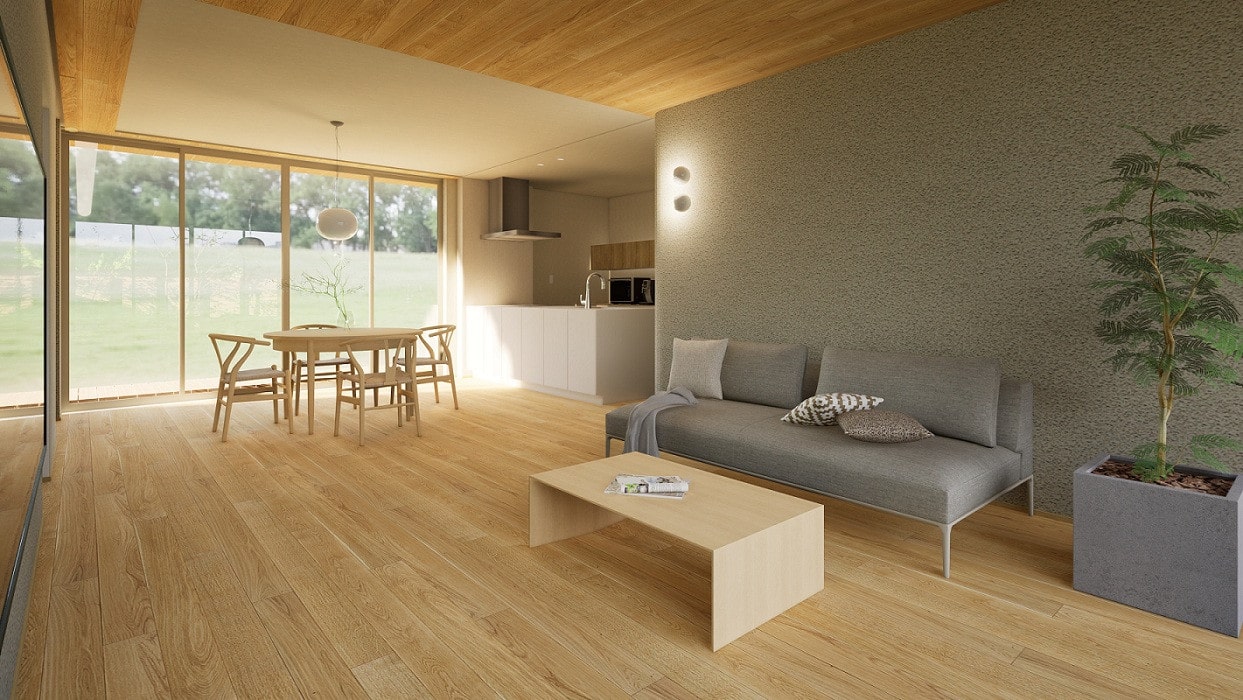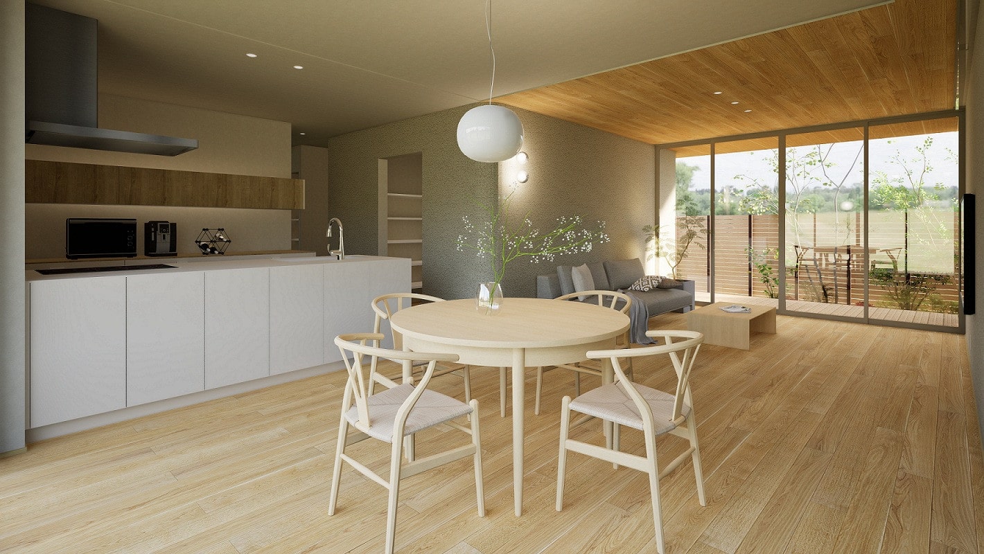段差のないフラットな平屋の空間は、いつでも家族の気配を感じられる安心感のあるくらしを生み出します。さらに、地面と近い高さから季節を楽しめるリビングや風の通り道を感じられる設計など、自然との共生も大切にするのが積水ハウスの平屋の暮しです。
