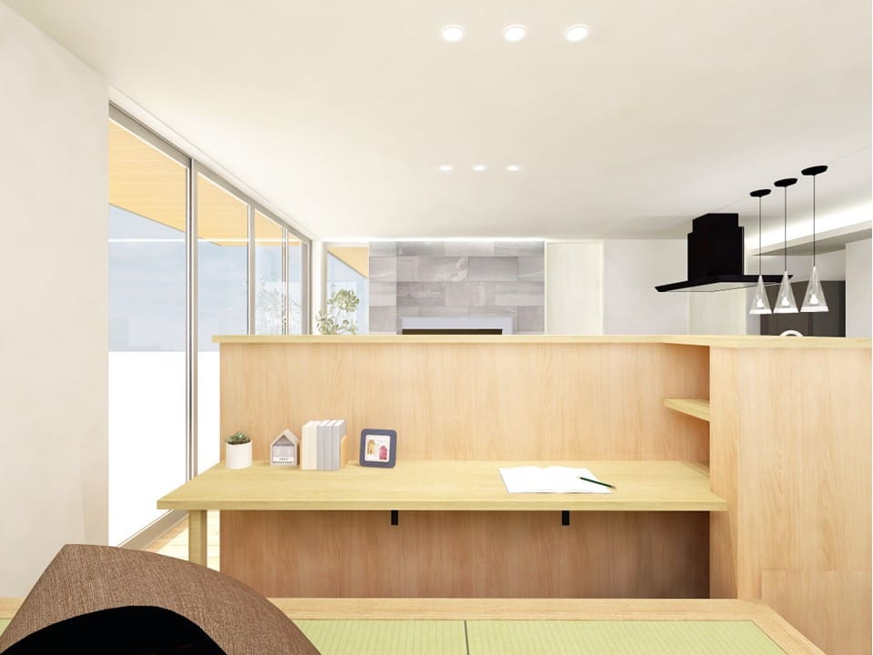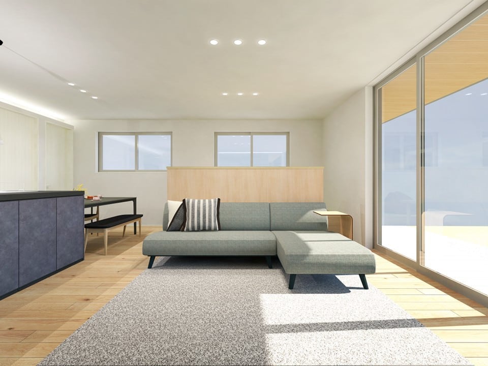 パースは実際の図面をもとに書き起こしたもので、素材・色・外構等は実際のものと異なる場合がございます。家具・小物等は配置例です。