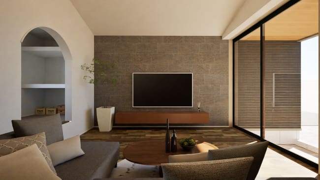 リビングの一角に設けたヌックは、光と距離感をほどよく纏う“隠れ家”のようなくつろぎ。