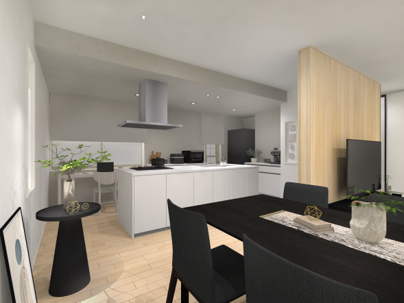 ・家族の会話が自然と生まれる、つながりのあるアイランドキッチンを採用。