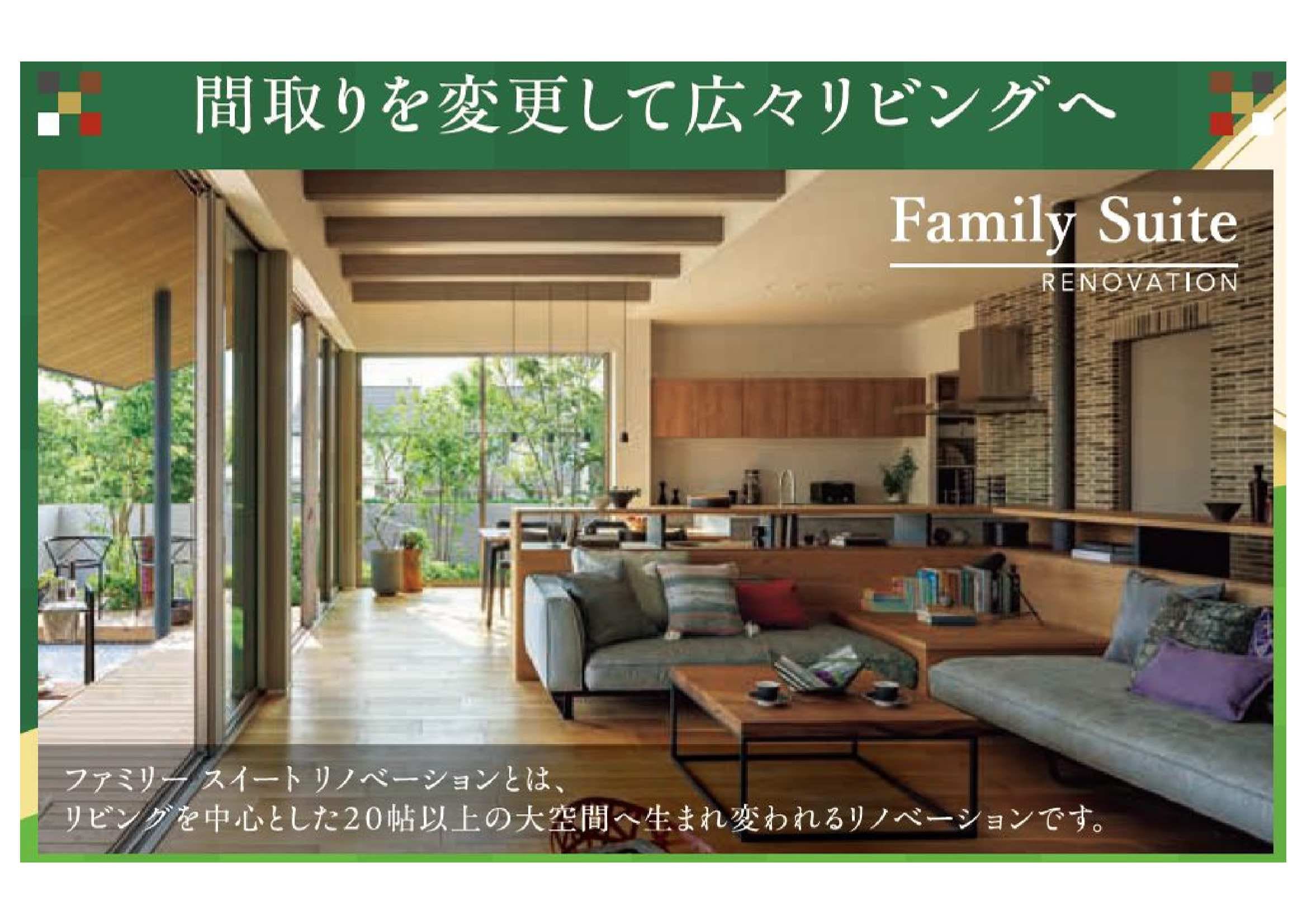 ファミリースイートリノベーションとはリビングを中心とした20帖以上の大空間へ生まれ変われるリフォームです。