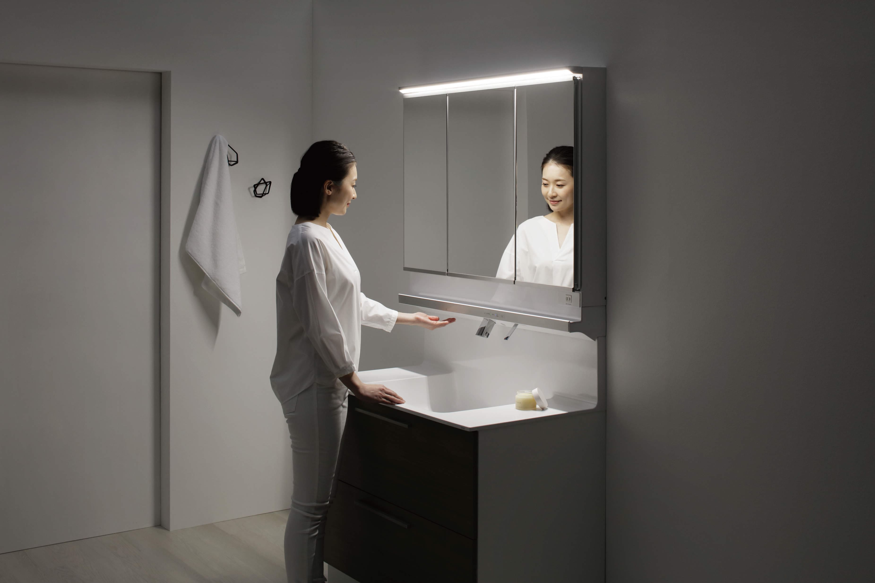 (開口750㎜・F1水栓・片開き・三面鏡)
