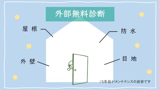 外部チェックでメンテナンスが必要な箇所を早期発見・処置することが、お体と同じように建物の「長寿命化」につながります。