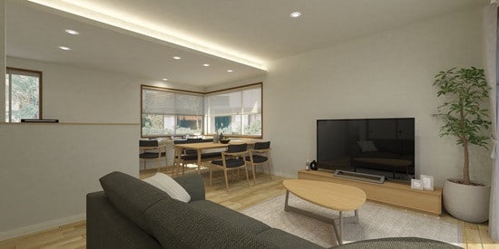家族の様子が見える、会話が生まれるLDK空間に。