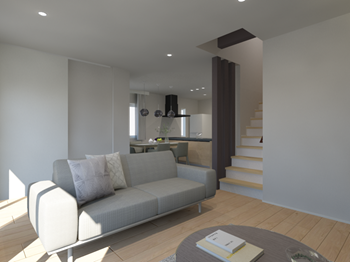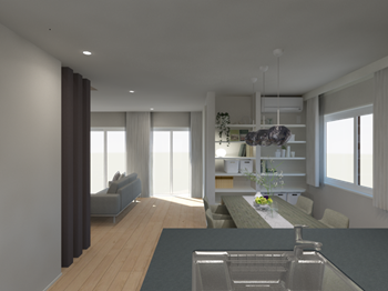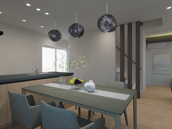 開放感あふれるリビングと洗練されたデザインが印象的な空間です。