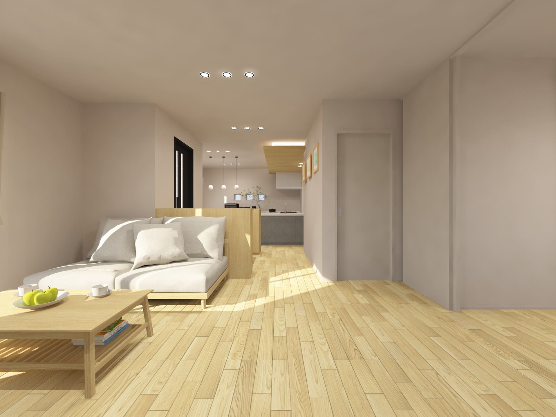 ※掲載のCGは、実際の図面から書き起こした完成予定パースです。家具・小物は当日ご覧いただく内観とは異なります。