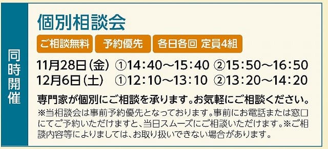 同時開催:個別相談会(ご相談無料・予約優先・各回定員4名)