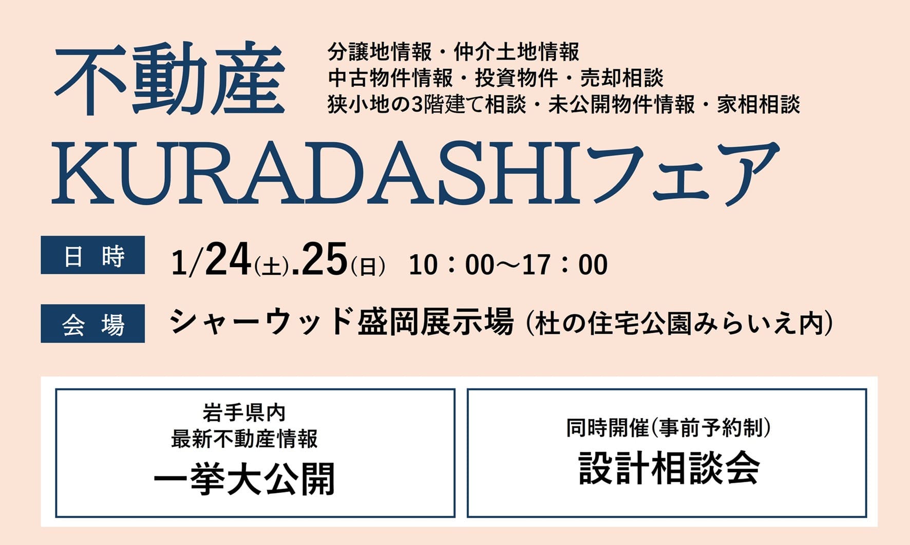 積水ハウスシャーウッド盛岡展示場にて岩手県内の土地の情報を一斉に公開する「不動産KURADASHIフェア」を開催致します!