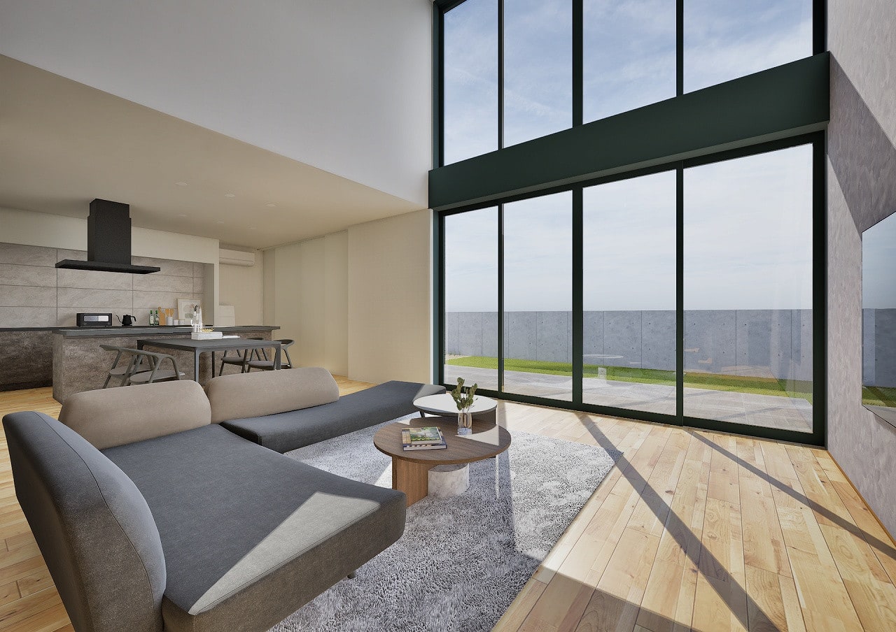 ●開放感あふれる吹抜けと、大きな窓から降り注ぐ光に包まれるLDK