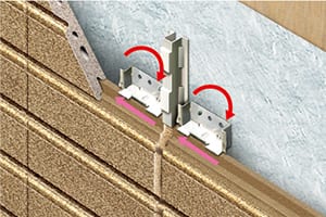 外壁の取り付けには、専用の取付金物を用いる、独自開発のスライドアブソーバー工法を採用。地震時の建物の変形を取付金具が回転して吸収する構造で、大きな揺れにも割れや脱落がないことを確認しています。