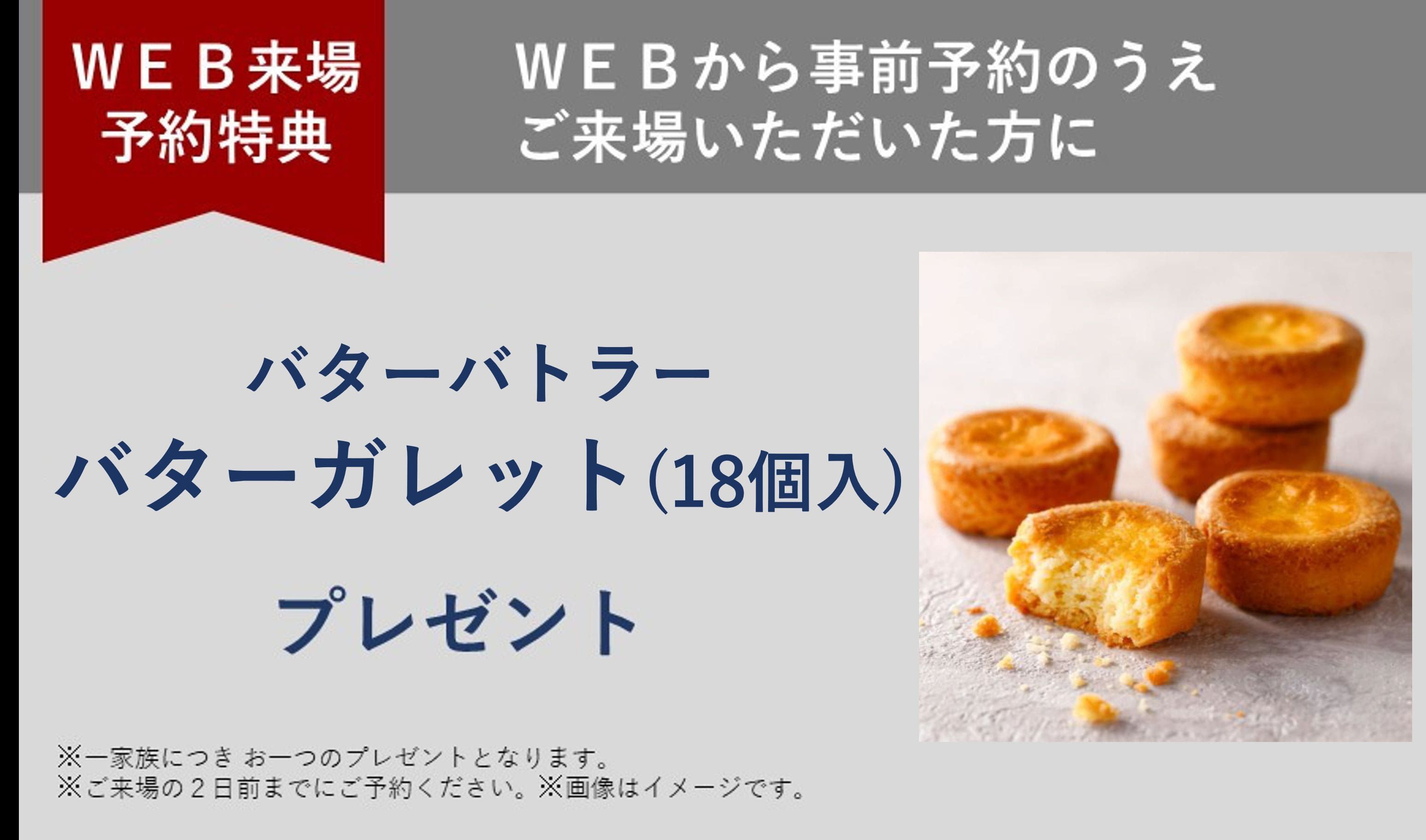 WEBから事前予約の上 ご来場頂いた方に限定「バターバトラー・バターガレット1箱(18枚入)」をプレゼント!