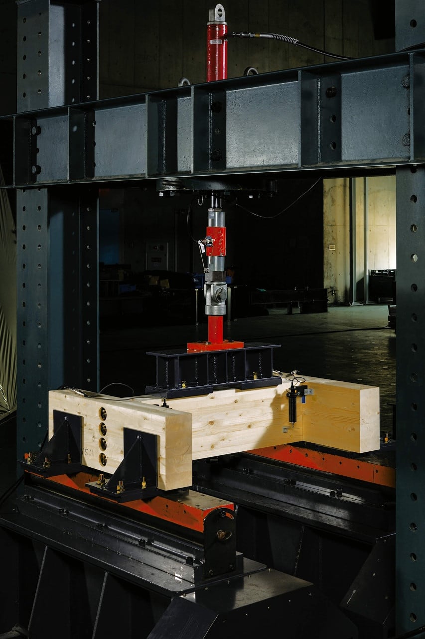積水ハウスでは、各部材・各部位で実験を繰り返し、構造性能を確かめています。材質そのものの強度や、接合部の強度。特に木造住宅における構造材となる木材や天然素材なのでバラつきが生じやすいもの。強度を数値管理することが可能となり、弱点であるバラつきを除去しています。