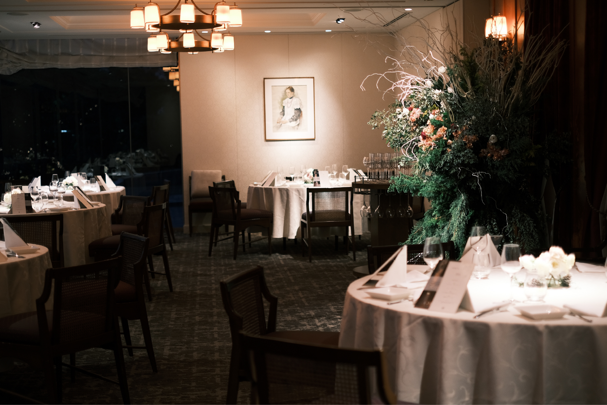 会場となった『レストラン花の木』は、1953年の創業以来70年以上にわたり、本格フランス料理の灯を守り続けてきた福岡屈指のレストラン。大濠公園に佇み、窓の向こうにはきらきらと輝く水面、悠々と浮かぶスワンボート、そして自然豊かな緑や鳥たちの姿も。長い歳月が育んだ老舗の風格と、訪れる人をやさしく迎え入れる温もり。その両方を兼ね備えた気品あふれる空間が、ゲストの皆様を非日常のひとときへと誘います。
