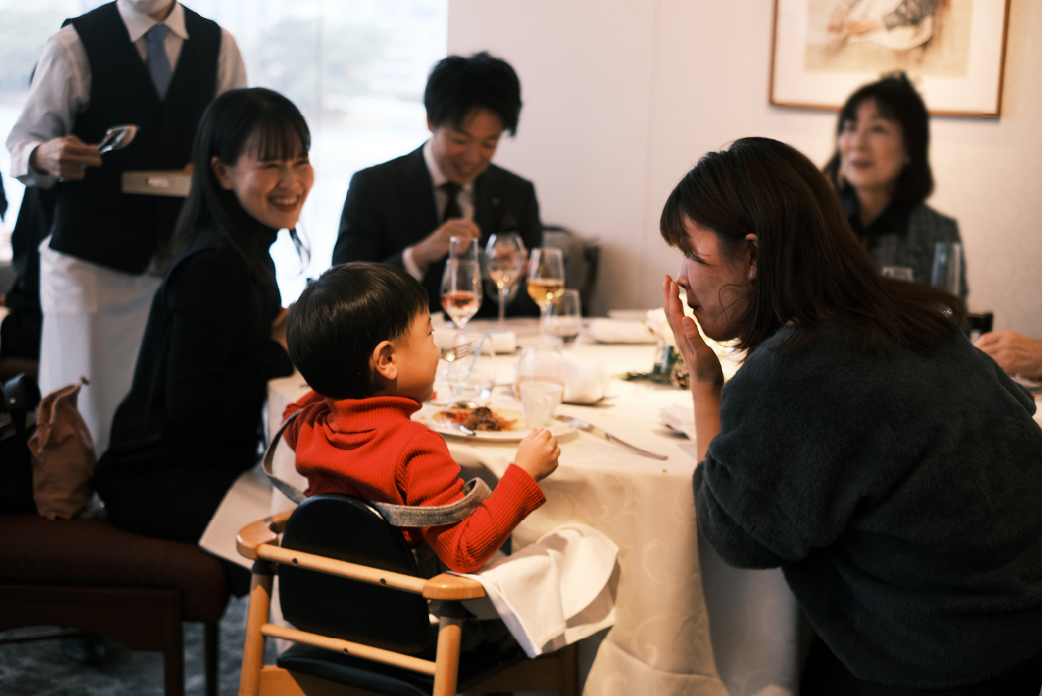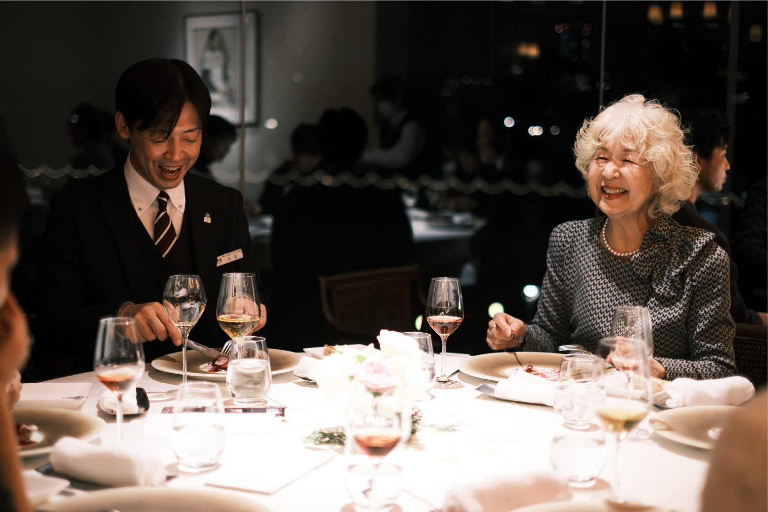 最初はどこかかしこまっていた空気も、料理が進むにつれて次第にほぐれ、自然と会話の輪が広がっていきます。各テーブルには積水ハウス社員も同席し、住まいのことから新しいグランドメゾンシリーズの話まで、気軽に質問が飛び交う場面も。また、同じグランドメゾンに住むという共通点から、初対面のゲスト同士が自然と打ち解け、終盤には和やかな盛り上がりに。