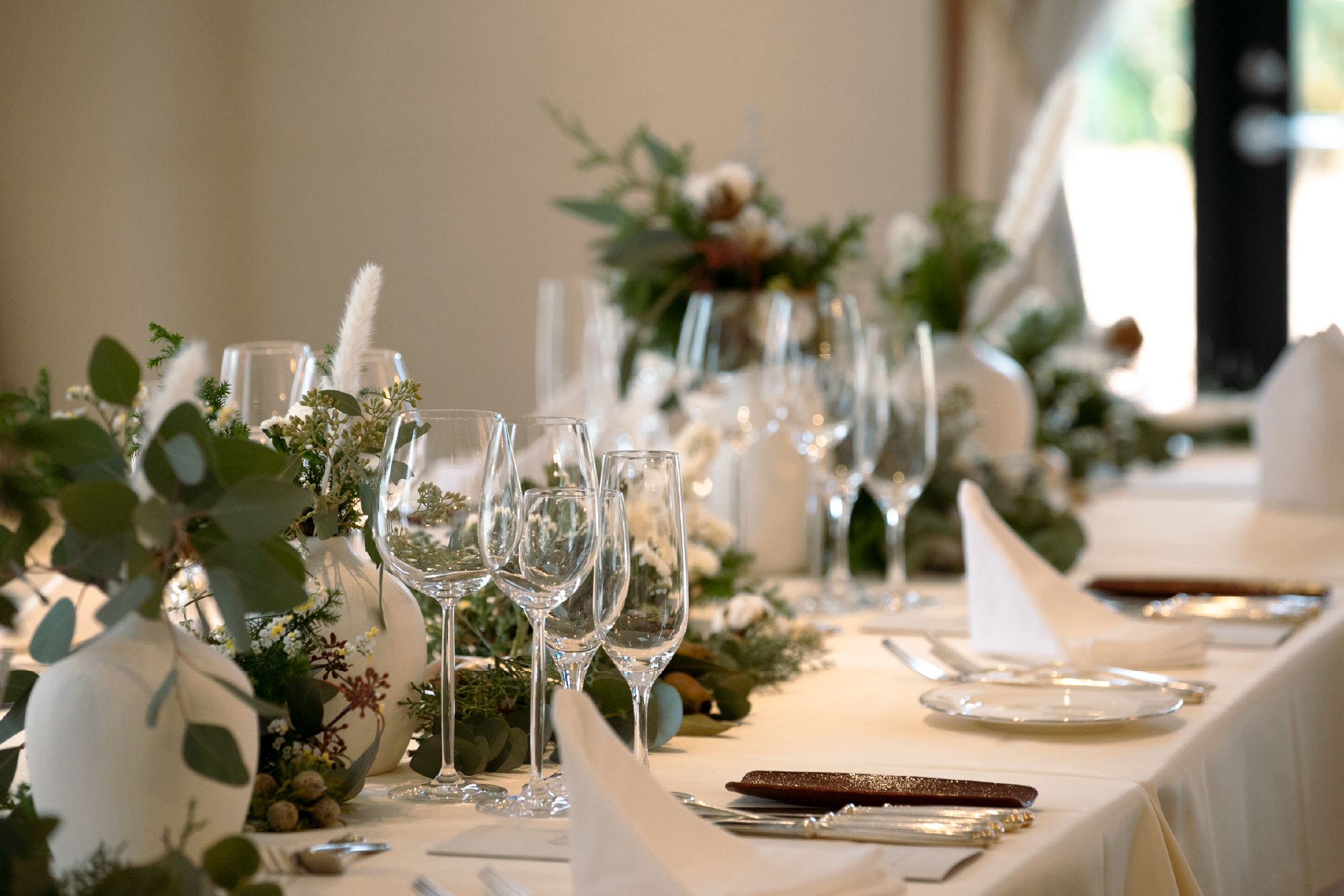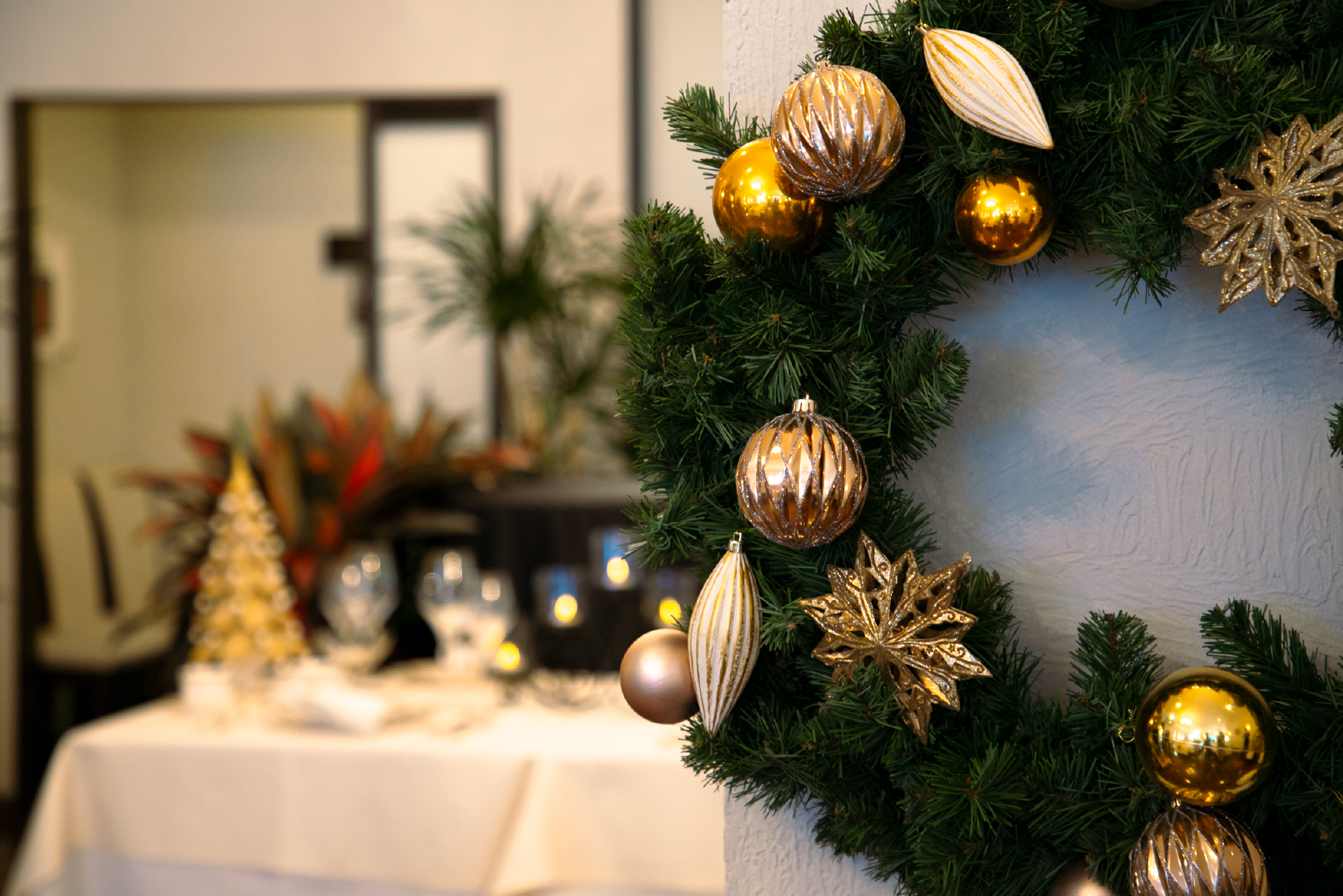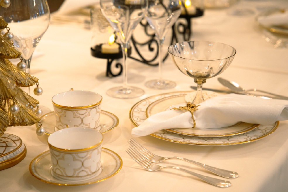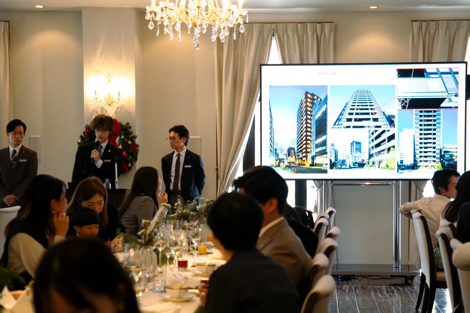 食事の合間には、ノリタケによるクリスマスならではのテーブルコーディネートの紹介も。華やかな食器のセレクトが、ホリデーシーズンらしいひとときを演出します。日常にそのまま持ち帰れる粋なおもてなしの提案に、オーナー様も自宅の食卓を思い浮かべるような表情を見せていました。