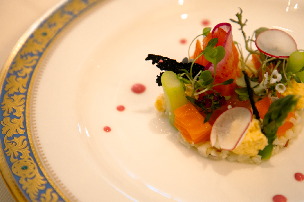 食事の締めくくりには、この日のために用意された特別なデザートが供されました。器も盛り付けも、一人ひとり異なる一皿が用意され、自然と他のお客様の皿に視線が向かいます。それぞれの皿を見比べ、味わい合う。そんな穏やかなやりとりがあちこちに生まれていました。