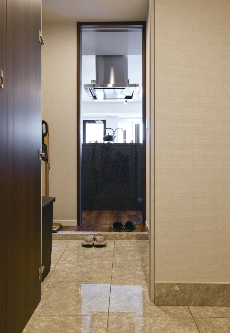 2.キッチンからシューズクロークを抜けて玄関へ。この動線が