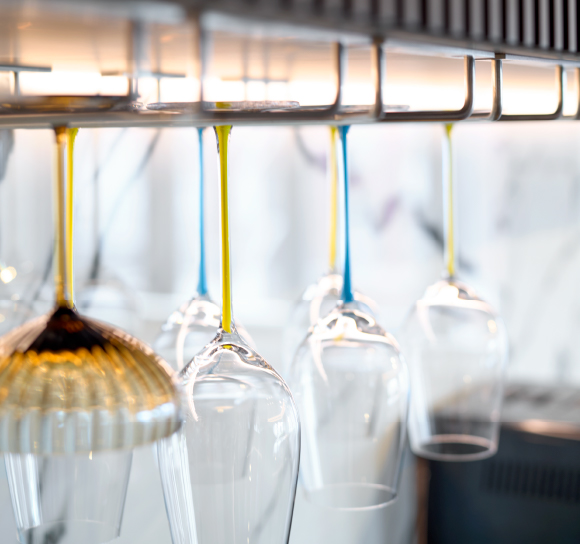 その造作収納は、調理家電のスペース、引き出しの数や配置、ワイングラスホルダーの付け方などを細かく指定した渾身の作。