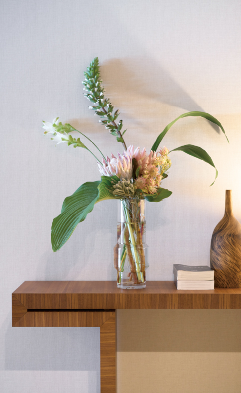 花やグリーンを活けたり、旅の思い出の雑貨を飾ったり。心豊かな暮らしが伝わります。