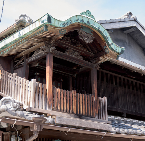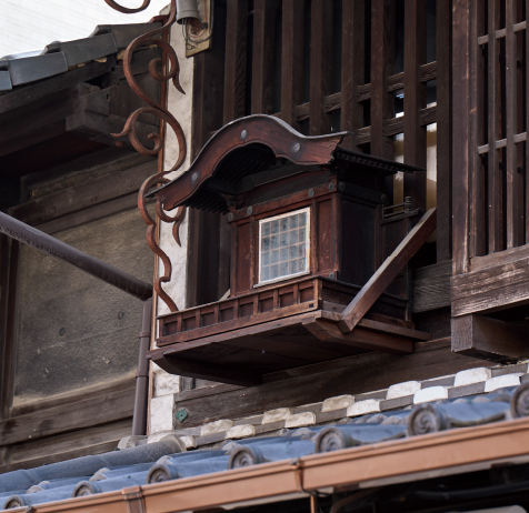 名古屋独自の風習でもある“屋根神様”のある町並み。火難や疫病除けなどを願い屋根の上に祠が設けられています。