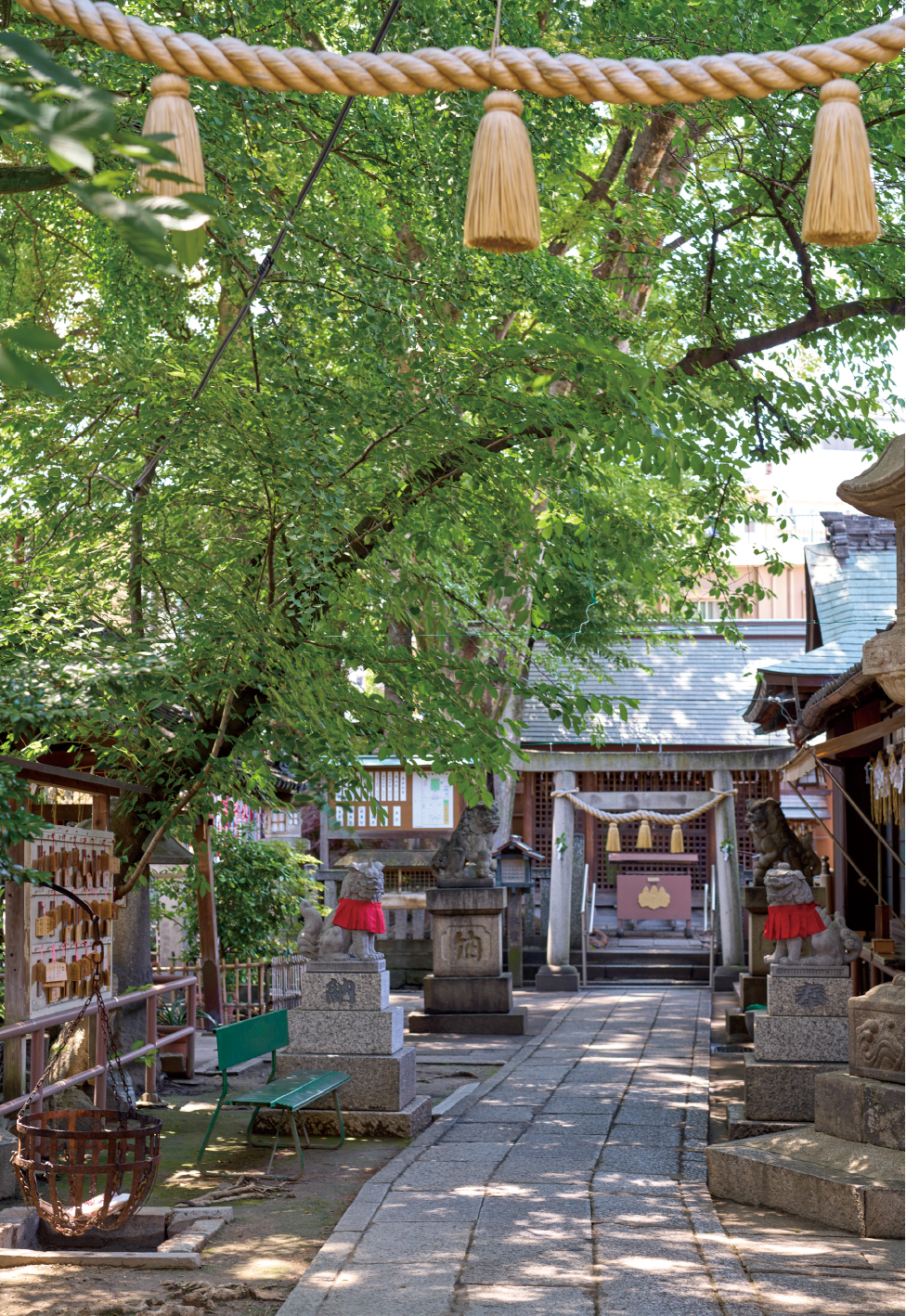 名古屋城築城に際してこの地に移設されたと伝わる浅間神社。静かな境内の中には樹齢300年を超えるクスノキが大きく枝を広げ、四間道の歴史を見守っています。