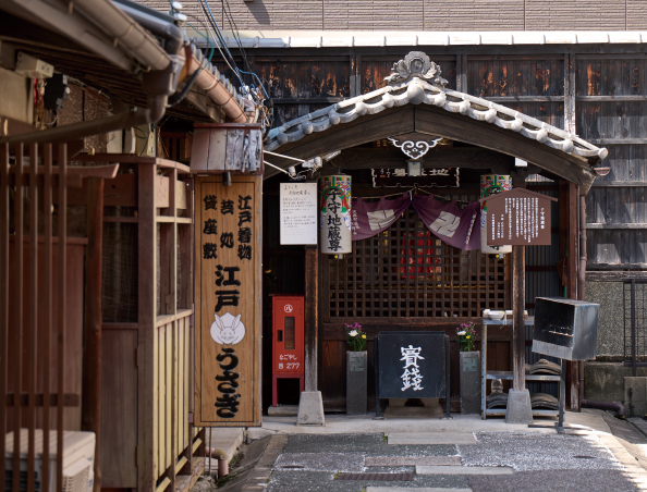 桜通から堀川沿いを北へ向かうと、ここまでの風景とはガラリと変わり、古い木造の建物が並ぶ風景が広がります。四間道町並み保存地区と呼ばれるこのあたりは、江戸時代に生まれた商人街。現在も土蔵や町家が多く残り、名古屋独自の文化でもある屋根神様と呼ばれる祠のある街並みが特徴です。
